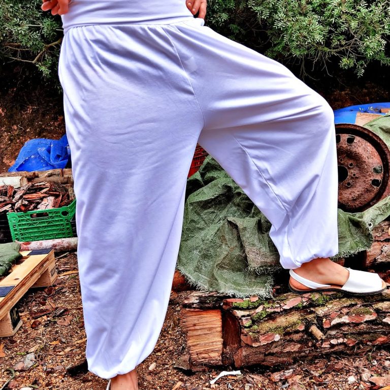 Nuestros pantalones son anchos de pierna, sus cinturas amplias, sus ajustes son cómodos, las telas son agradables al tacto y tienen cierta elasticidad por lo que son usados en prácticas que requieren libertad de movimientos. Los practicantes de Yoga, Taichi, Meditación, Pilates entre otras disciplinas aprecian muchos estas características para llevarlos en sus sesiones.